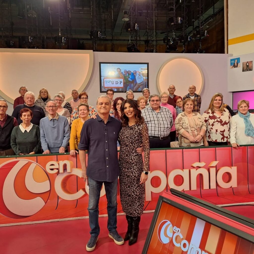 Socios de Udp Cuenca, asisten como publico al programa de Tv de Castilla-La Mancha Media » En Compañía » y donde el presidente provincial Justo Mora les hace entrega de un reconocimiento a su labor de difusión de la I Gala provincial de Cuenca